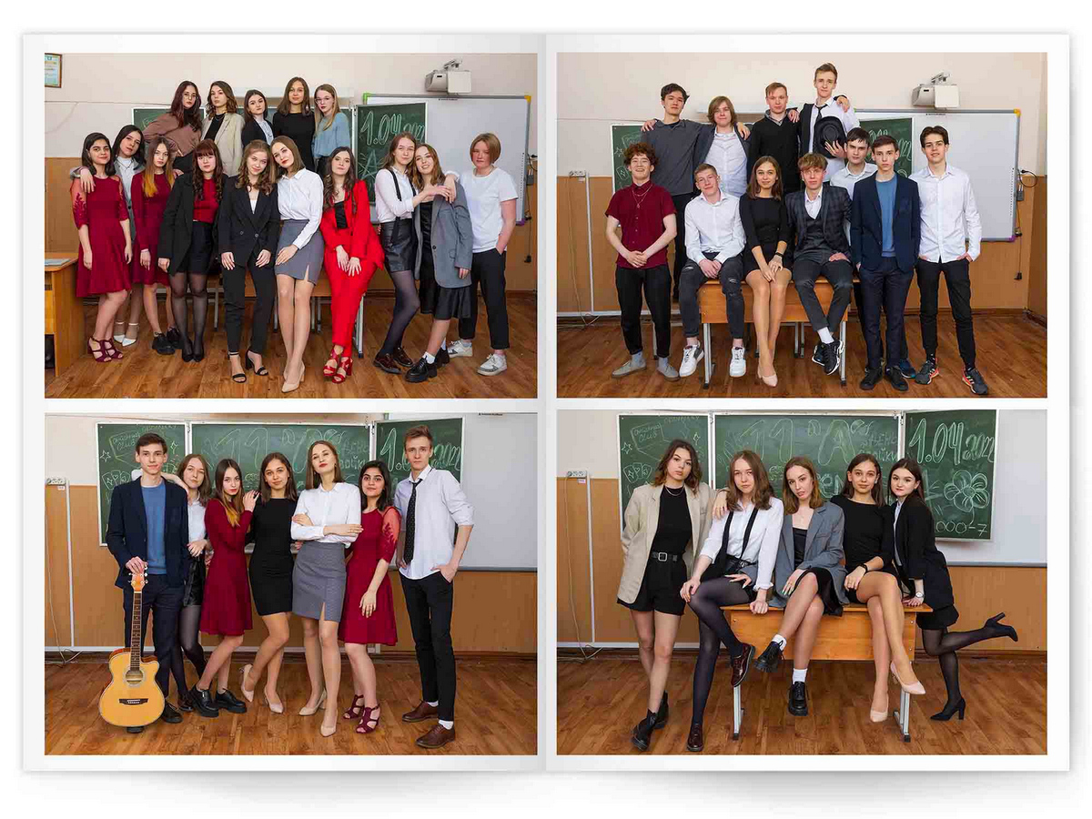 • Съёмка альбома в фотостудии от +750 ₽/человек (точная стоимость зависит от количества учеников и выбранной фотостудии)