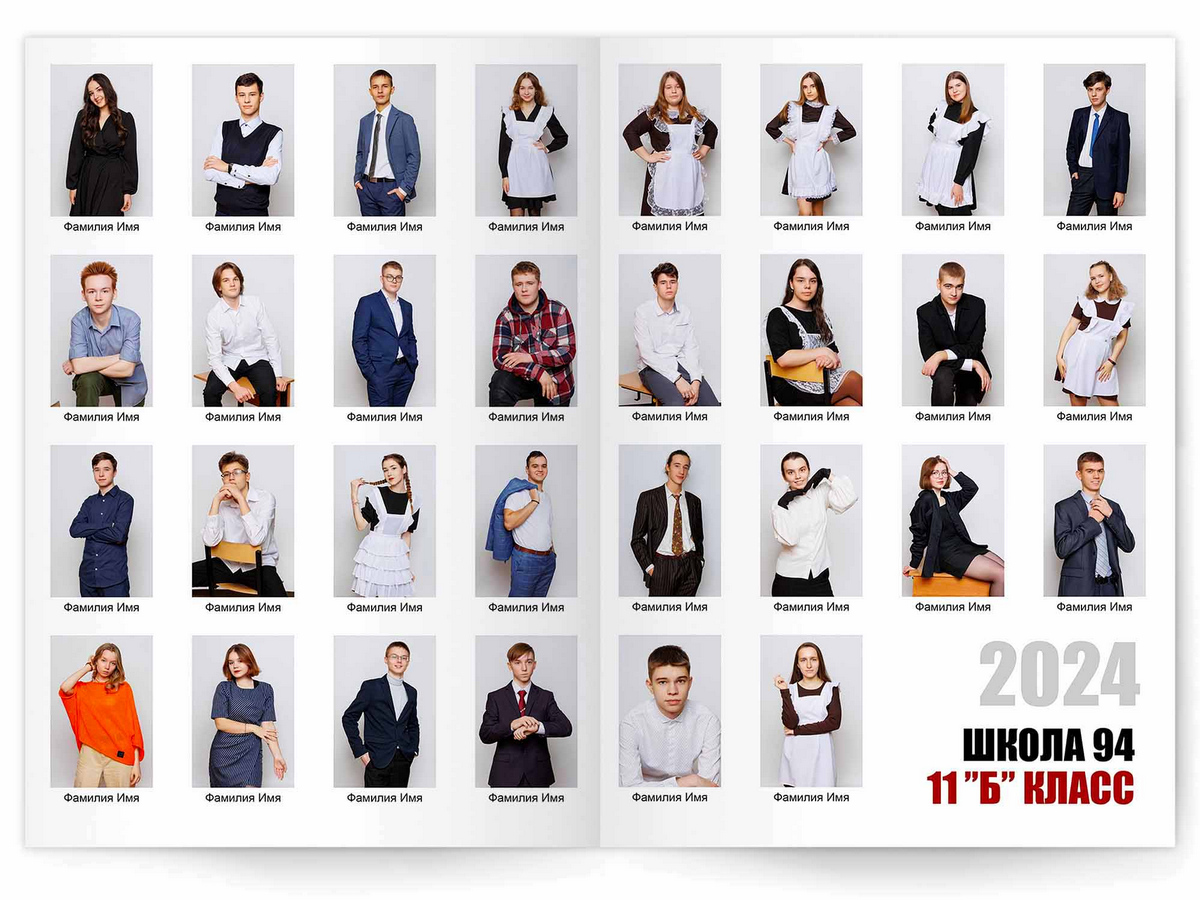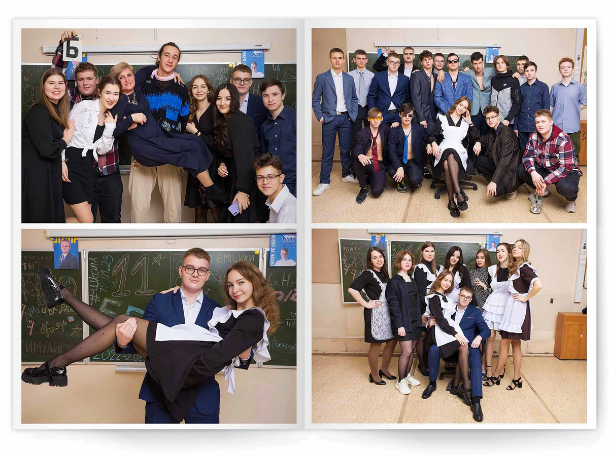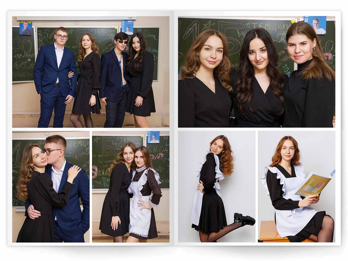 • Съёмка альбома в фотостудии от +750 ₽/человек (точная стоимость зависит от количества учеников и выбранной фотостудии)