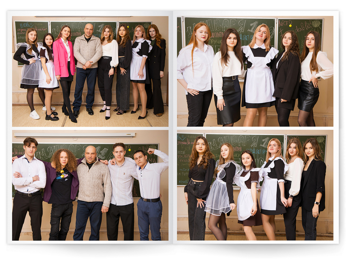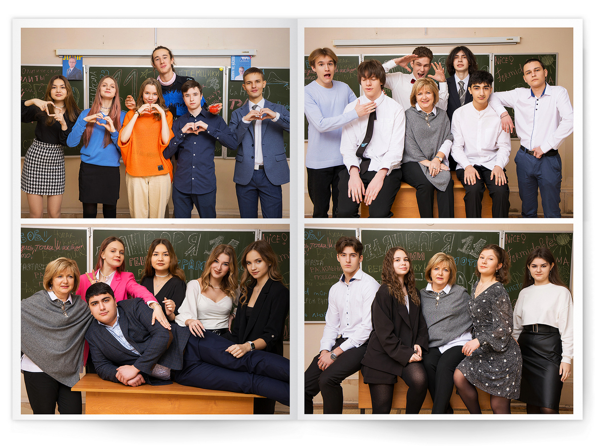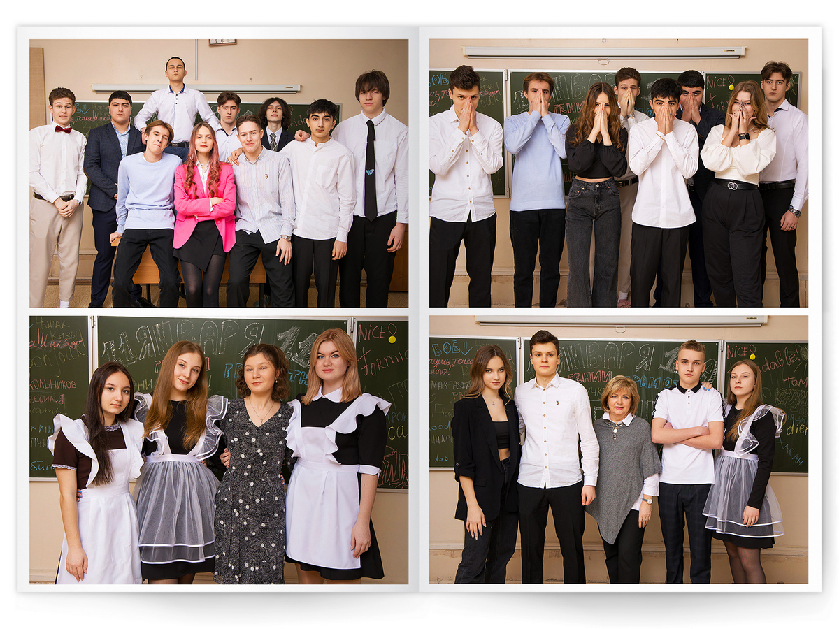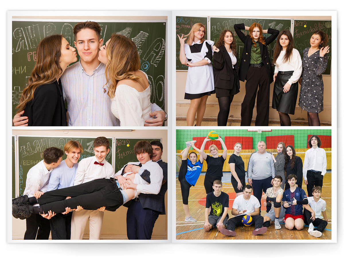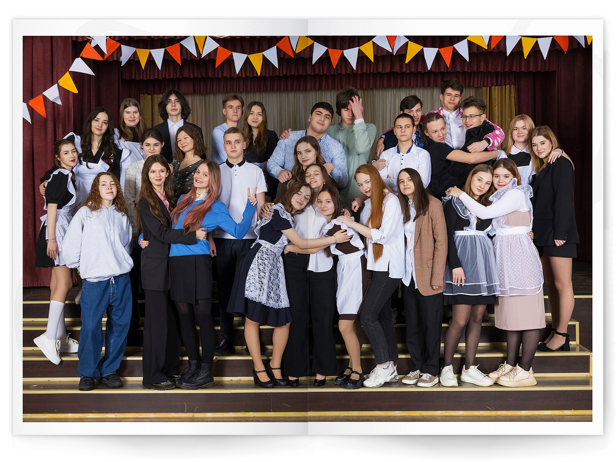 • Съёмка альбома в фотостудии от +750 ₽/человек (точная стоимость зависит от количества учеников и выбранной фотостудии)