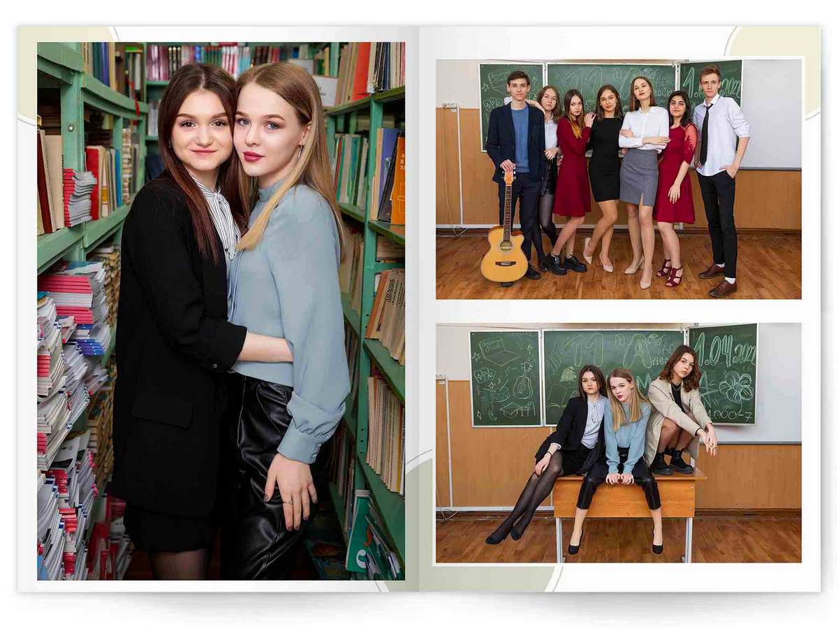 • Съёмка альбома в фотостудии от +750 ₽/человек (точная стоимость зависит от количества учеников и выбранной фотостудии)