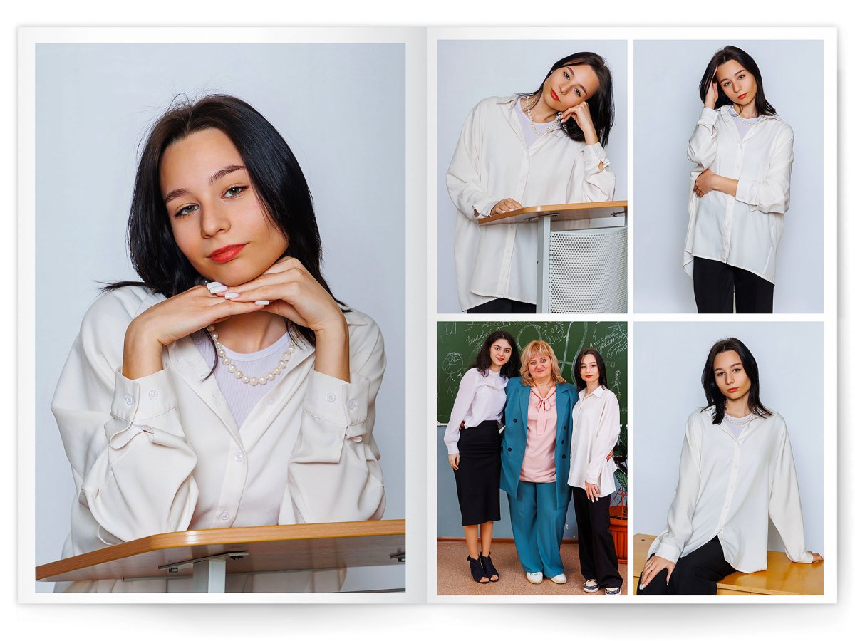 Потому что мы не снимаем «как у всех». Каждый кадр — это маленькое арт-заявление: резкий свет, дерзкие ракурсы, цвет как у лучших fashion-редколлегий. И да — всё это будет снято в вашей школе, а не в студии за три часа езды. Директор не пускает в школу — снимем в студии! Студия оплачивается отдельно.
