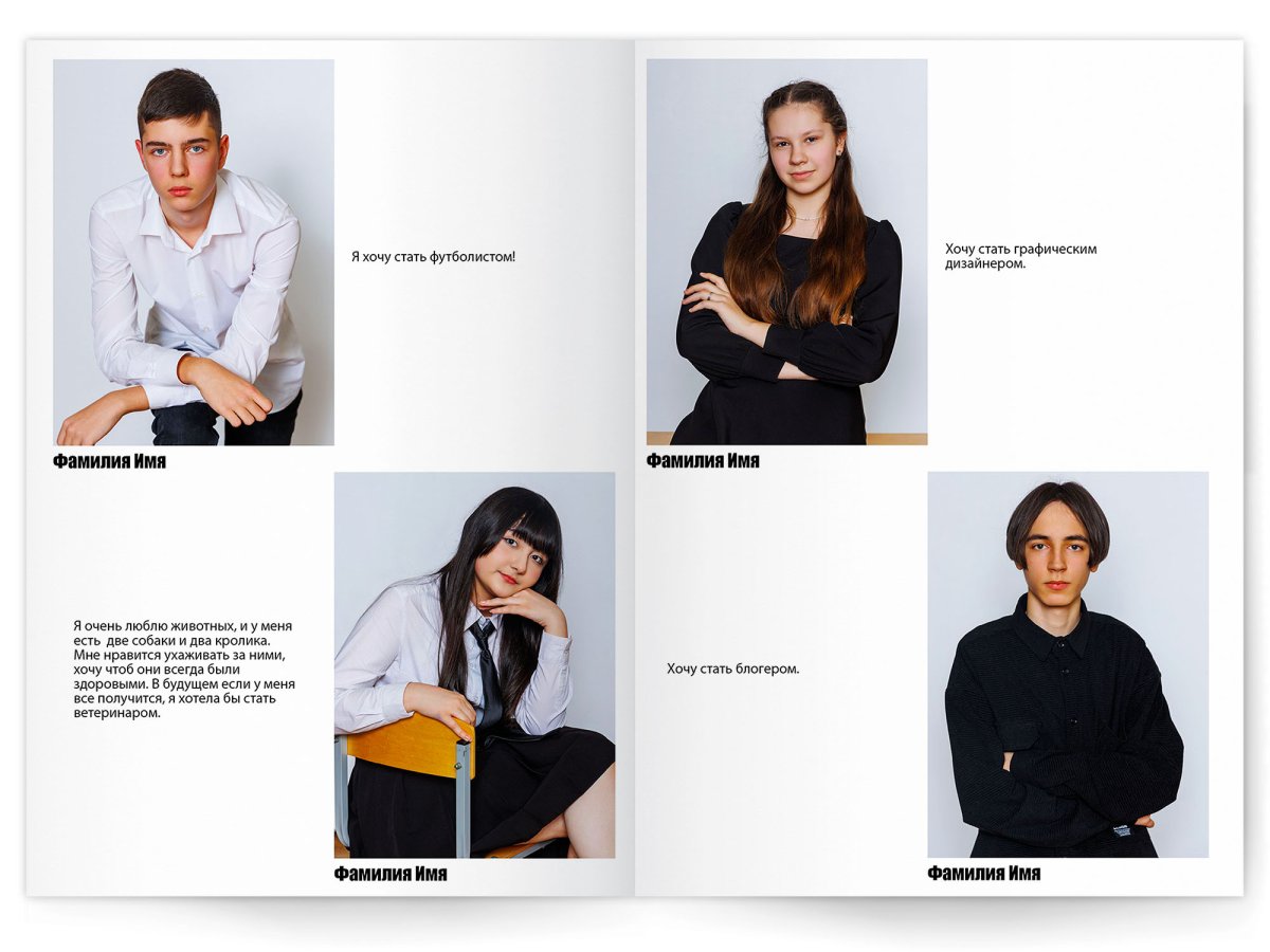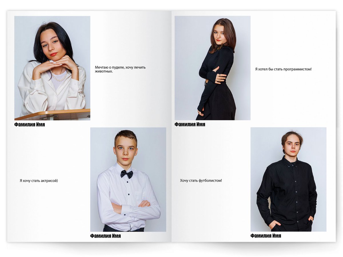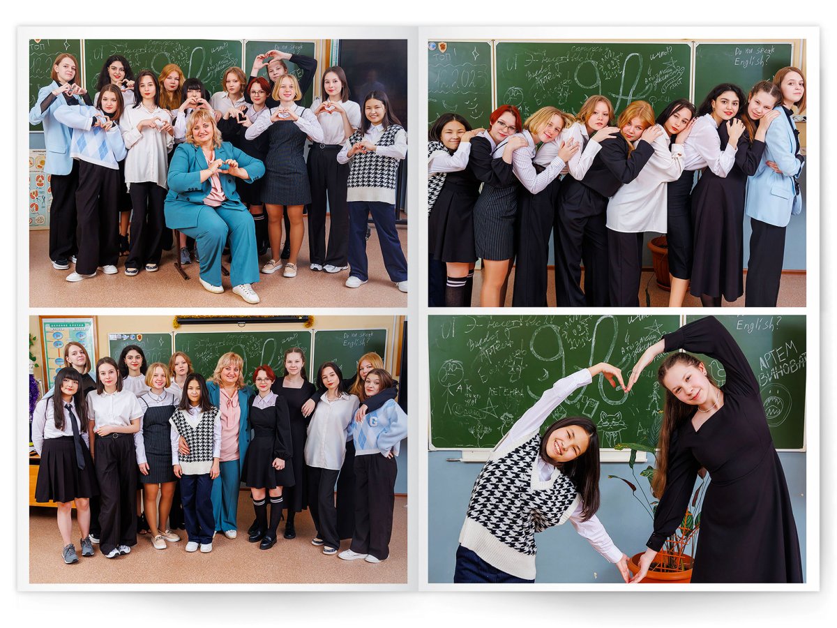 • Съёмка альбома в фотостудии от +750 ₽/человек (точная стоимость зависит от количества учеников и выбранной фотостудии)