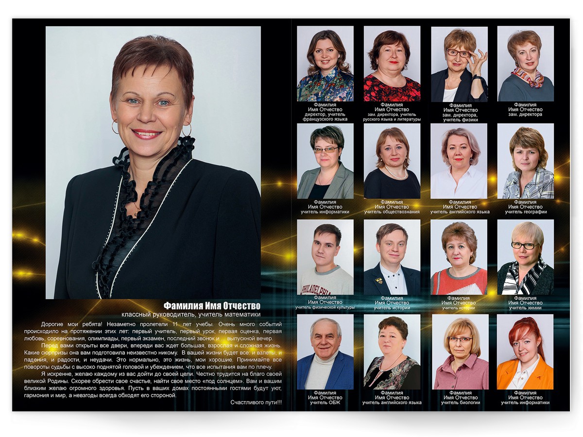 • Разворот с общей фотографией всего класса